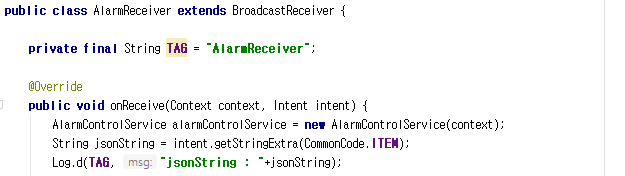 BoradcastReceiver를 상속받으면 onReceive(Context, Intent)가 생성되며, intent는 전달하고자 했던 메시지.
