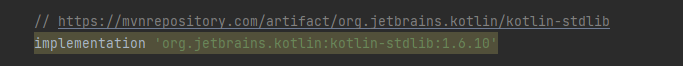 아래와 같이, "kotlin-stdlib" 를 dependency에 추가해주면 정상적으로 동작된다.