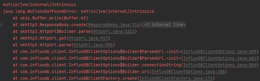 해당 에러는 influxdb-client-java 라이브러리에서 제공하는 InfluxDBClientFactory.create 를 이용해,InfluxDBClient 를 생성할 때 발생하였다.