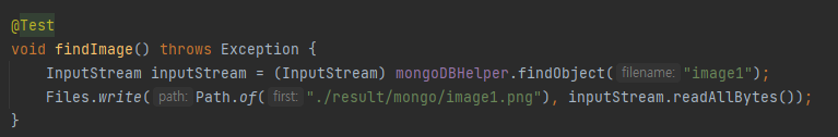 : mongoDB에 저장된 이미지를 불러와 ./result/mongo/image1.png 로 저장하는 테스트 코드이다.