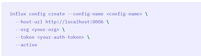 influx 가 설치된 경로로 진입하여, config 파일을 생성한다. config 명은 default로 할 경우, influx 실행 시, 따로 config 명을 입력하지 않아도 되며, host-url, org, token 은 각자 본인에 맞게 작성하도록 한다.