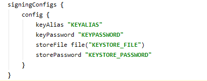1. android{.....} 내부에 아래의 signingConfigs 작성