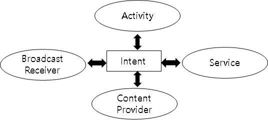 - 각 컴포넌트는 Intent를 이용하여 메시지 전달가능.