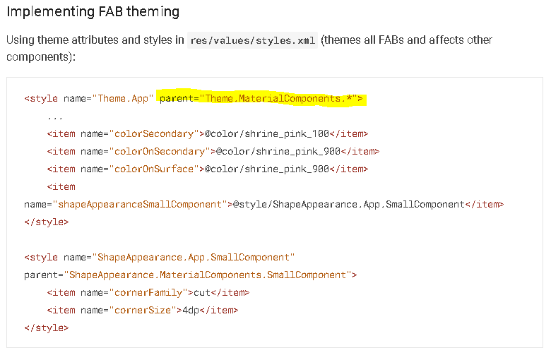 발생 원인 : ExtendedFloatingActionButton은 MaterialComponent의 구성요소에 포함된다. 그렇기 때문에, ExtendedFloatingActionButton을 사용하려면, Theme 또한 MaterialComponent에서 가져와야 한다.