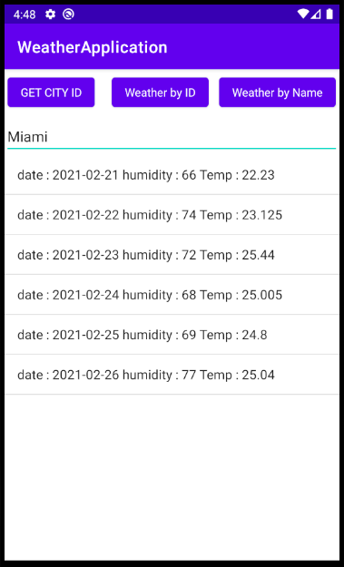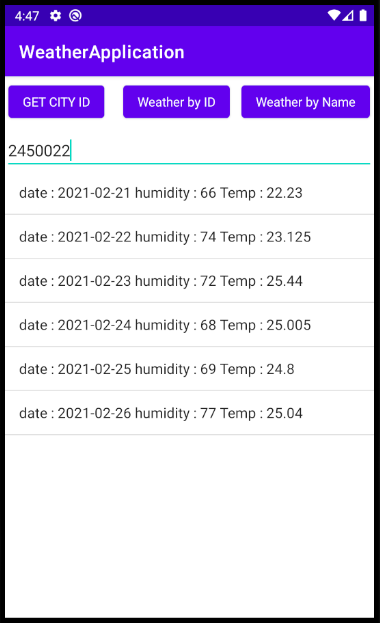 - 기능 3 : 지역명을 이용하여 7일 간의 날씨 데이터를 받아온다.