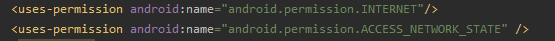 INTERNET, NETWORK 퍼미션 두개 필요 ( 영상에서는 INTERNET만 추가하였으나, 그러면 에러남 )